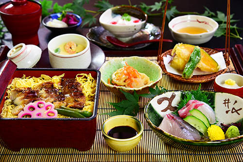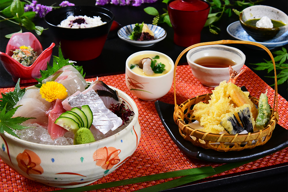 自慢のお造りに天ぷら、穴子飯と福亭の旨グルメをセットにしました。 人気のセット「姫山膳」 3,000
